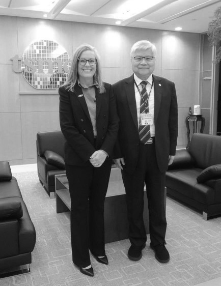 ↑Katie Hobbs(左)與魏哲家在新竹台積電總部。