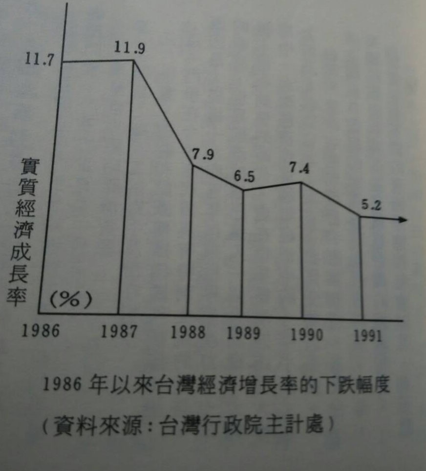 五、隨著台灣由生產型經濟向消費型經濟轉化,進口增長率逐漸高於出口,台灣可能患上西歐所謂「福利經濟病」。島內通貨膨脹速度正在日漸上升。