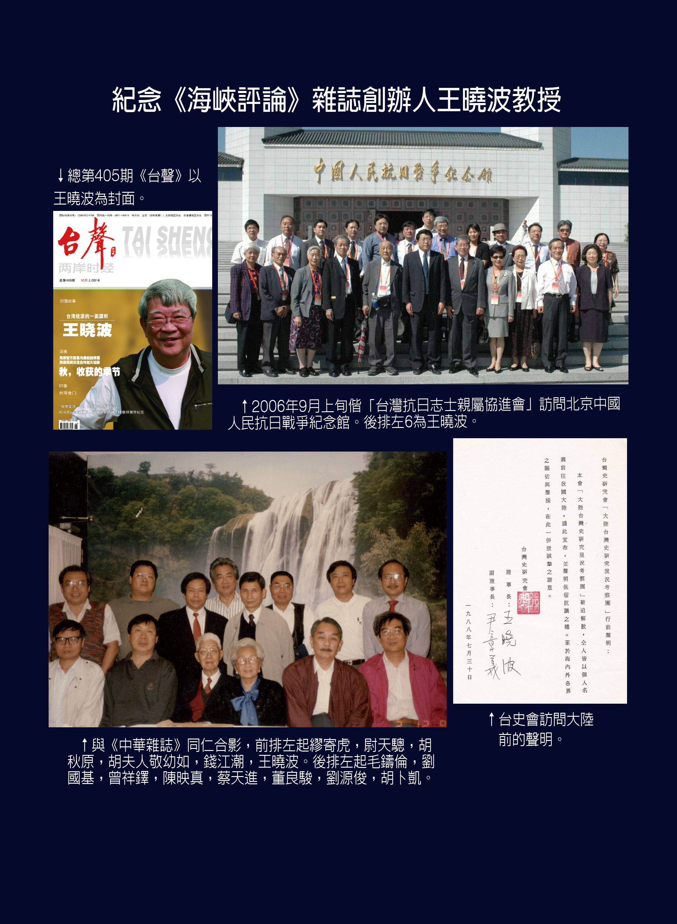 1990年秋,在有錢出錢有力出力的各方愛國人士支持下,王曉波毅然決定創刊《海峽評論》,堅稱即使一本不賣,我們也要為這一段的台灣留下歷史紀錄。《海峽評論》於1991年1月發行創刊號。