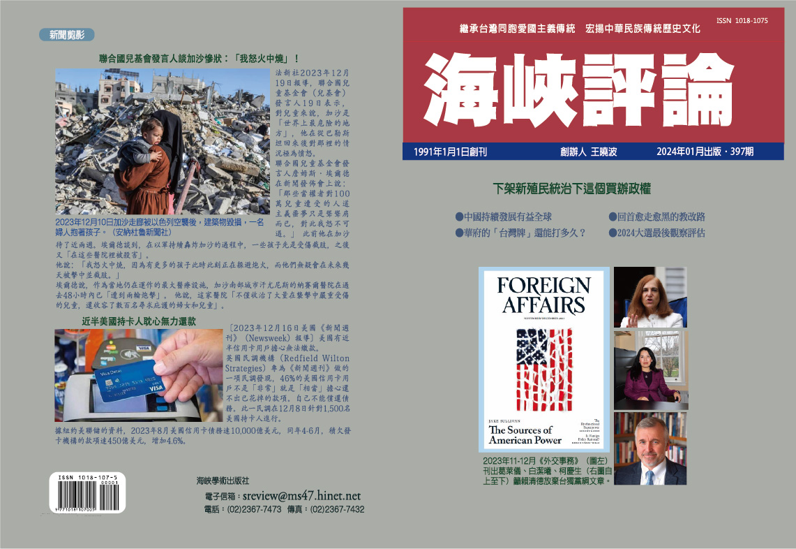 葛來儀、白潔曦與柯慶生三名華府美中關係學者,2023年11月30日在美國《外交事務》期刊聯名發表文章,文中除維持台海現狀等老哏,一點新意是公開呼籲民進黨總統參選人賴清德,如果勝選,應考慮凍結台獨黨綱。
